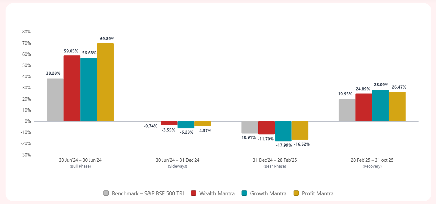 Performance In Bull Phase Vs Sideways Vs Bear Phase Vs Recovery Phase