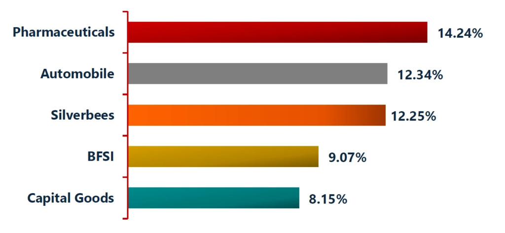 Silverbees Automobile BFSI Pharmaceuticals Capital Goods 15.45% 10.79% 9.06% 8.07% 7.66%